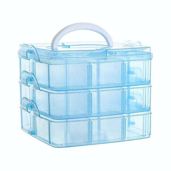 3 Layer Detachable Jewelry Storage Box Plastic Handheld Cosmetic Storage Box(Blue)