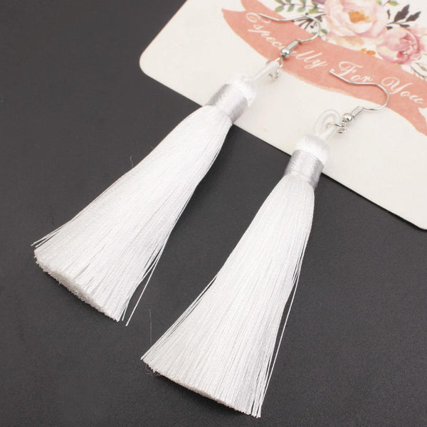 3 Pairs Women Boho Fashion Long Tassel Earrings(White)