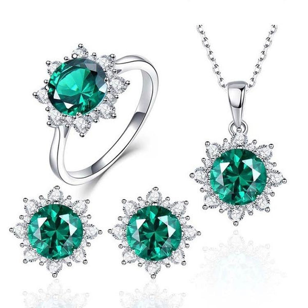 3 PCS/Set Snow Shape Gemstone Jewelry Set For Women, Ring Size:10(Green)
