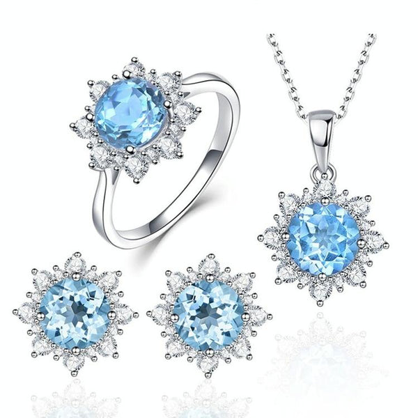 3 PCS/Set Snow Shape Gemstone Jewelry Set For Women, Ring Size:7(Sea Blue)