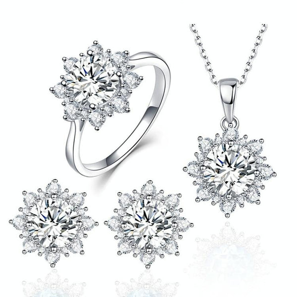 3 PCS/Set Snow Shape Gemstone Jewelry Set For Women, Ring Size:8(White)