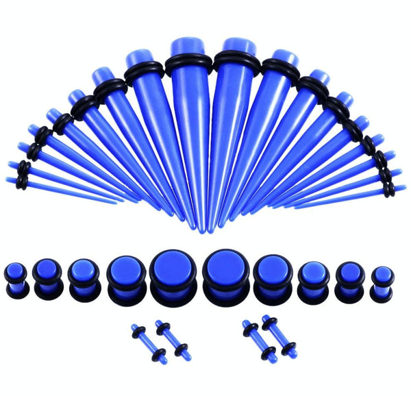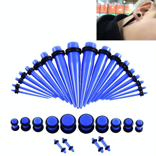 36PCS Unisex Acrylic Ear Expansion Ear Extender 14G-00G Accessories Set(Blue)