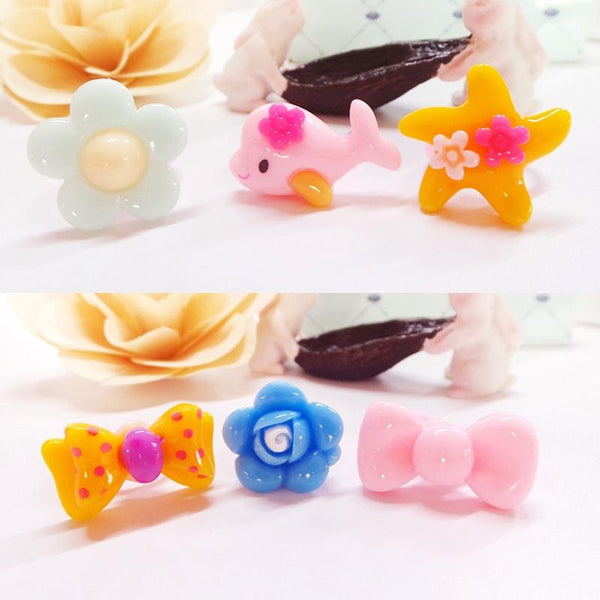 40 PCS Children Cute Cartoon Resin Flower Animal Heart Bow-knot Ring, Smooth Surface