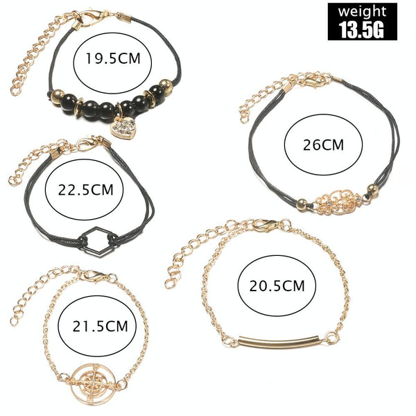 5-in-1 Personality Compass Hexagon Bracelet Diamond Heart Beaded Pendant Jewelry, Color: SKU4161