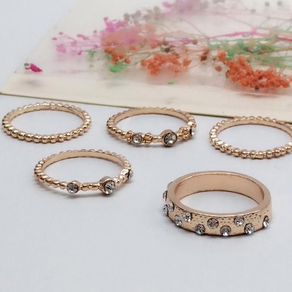 5 PCS/Set Fashion Women Rose Gold Rhinestone Elegant Rings Jewelry Set, Ring Size:10