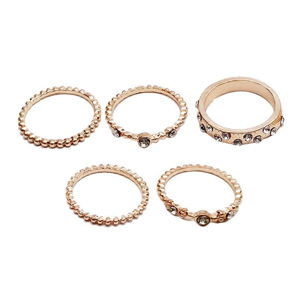 5 PCS/Set Fashion Women Rose Gold Rhinestone Elegant Rings Jewelry Set, Ring Size:9