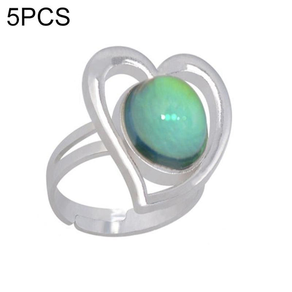 5 PCS Temperature Sensitive Discoloration Adjustable Open Ring(Heart Gem)