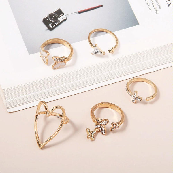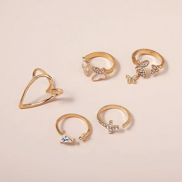 5pcs/set Cross Triangle Heart Hollow Butterfly Knuckle Ring(SKU5217)