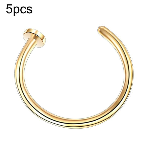 5pcs Stainless Steel Nose Ring Without Hole C-Shape Nose Staple Lip Band Earrings, Size: 0.8 x 10+2(Gold)