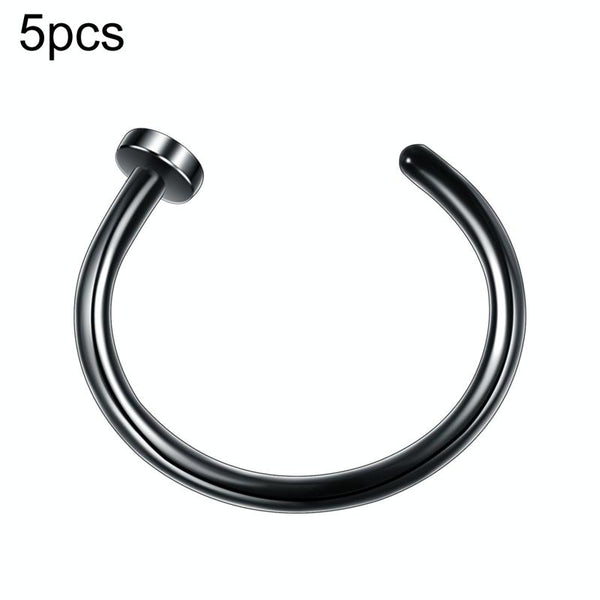 5pcs Stainless Steel Nose Ring Without Hole C-Shape Nose Staple Lip Band Earrings, Size: 0.8 x 6+2(Black)