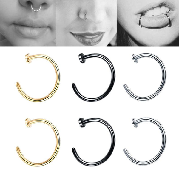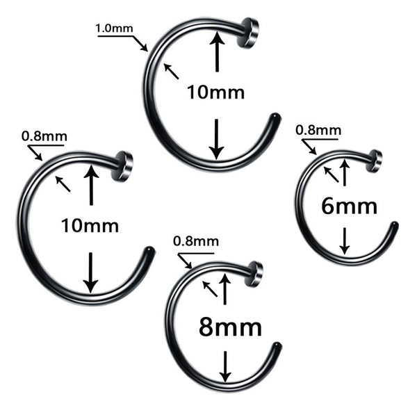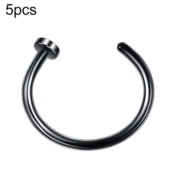 5pcs Stainless Steel Nose Ring Without Hole C-Shape Nose Staple Lip Band Earrings, Size: 1.0 x 8+2(Black)