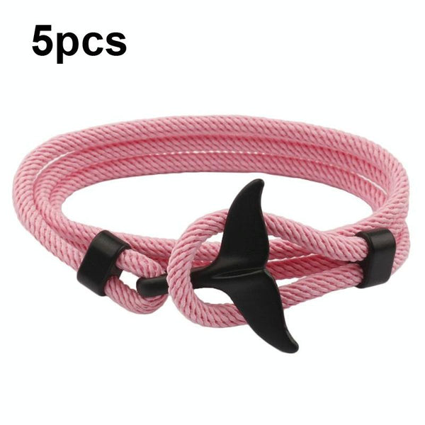 5pcs Whale Tail Braided Hand Rope Double Live Buckle Adjustable Bracelet(Pink)