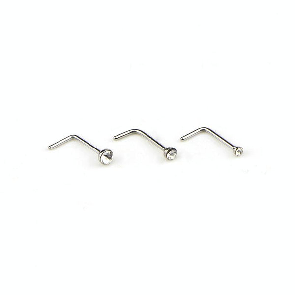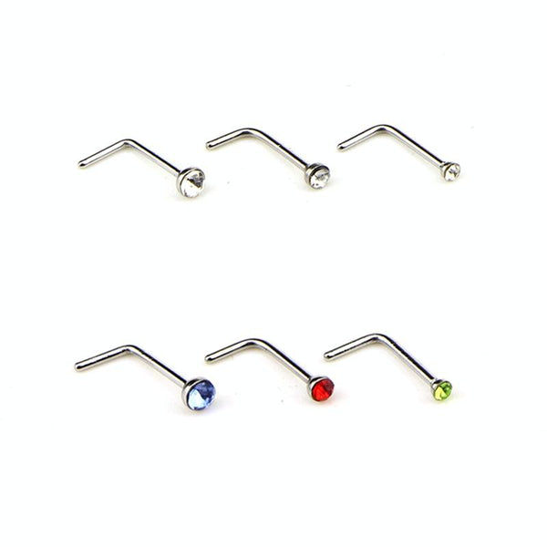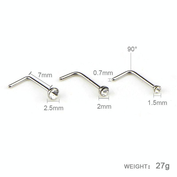 60 PCS Color Mixed Diamond Shape Stainless Steel Nose Stud Rings L Shaped Piercing Jewelry,Pin Length: 7mm, pin diameter: 0.6mm (White)