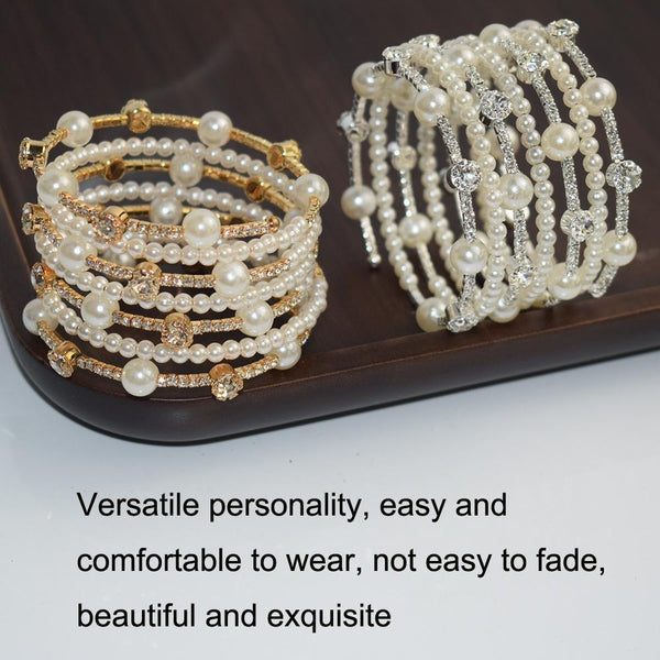 7 Row Silver Simple Rhinestone Pearl Wrapped Arm Bracelet Versatile Bracelet