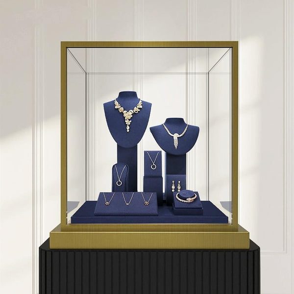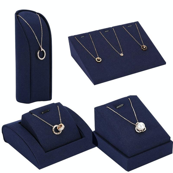 7x8x5.5cm Necklace Holder Jewelry Display Props Blue Microfiber Window Necklace Earring Ring Stand