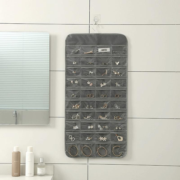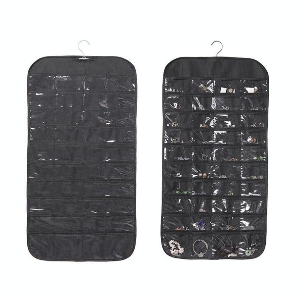80-grid Jewelry Storage Hanging Bag Mon-woven Double-sided Jewelry Organizer Bag(Black)