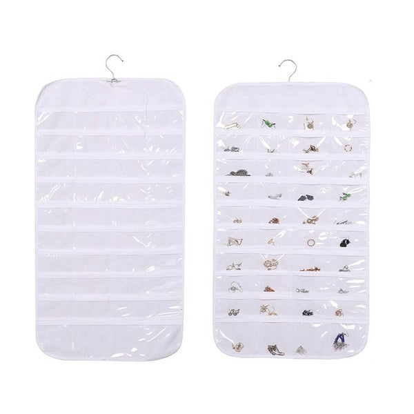80-grid Jewelry Storage Hanging Bag Mon-woven Double-sided Jewelry Organizer Bag(White)