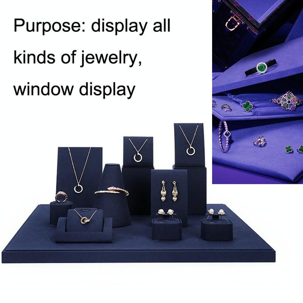 8x8x32cm Diorama Necklace Holder Jewelry Display Props Blue Microfiber Window Necklace Earring Ring Stand