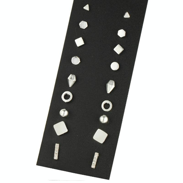 9 Pair Sets Assorted Multiple Stud Earrings Jewelry Set With Card For Women And Girls(Silver)
