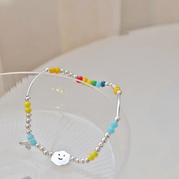 925 Silver Plated Rainbow Smile Beaded Bracelet Ladies Jewelry, Color: Cloud Rainbow