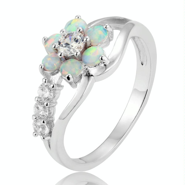 925 Silver Women Opal Flower Ring Jewelry, Ring Size:9(White)