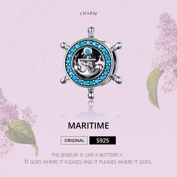 925 Sterling Silver Beaded Boat Rudder Blue Bead DIY Bracelet Jewelry Accessories