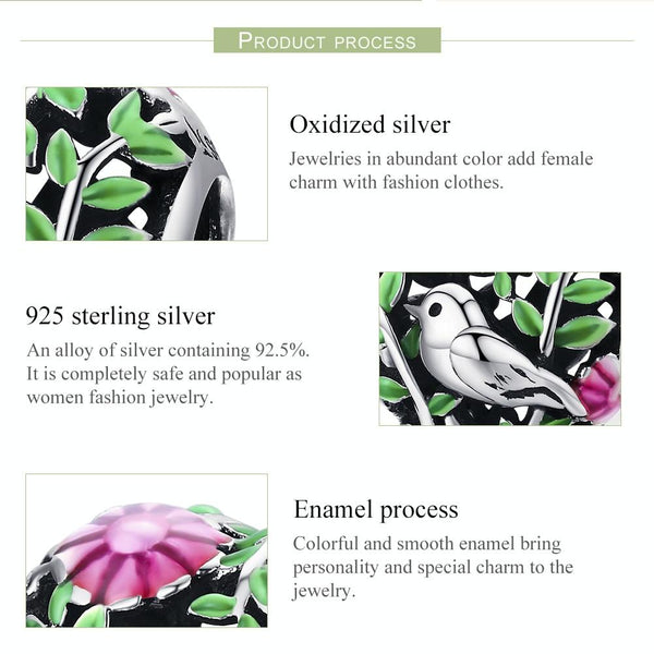 925 Sterling Silver Bird In The Woods Charm Beads Fit Women Bracelet Necklaces Jewelry