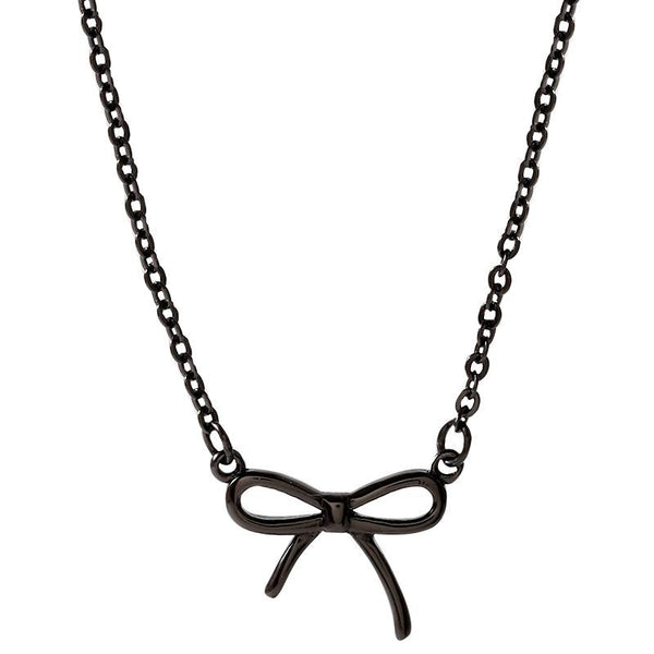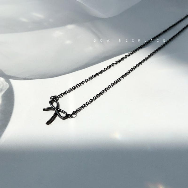 925 Sterling Silver Bowknot Necklace Women All-Match Simple Jewelry(Black)