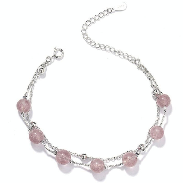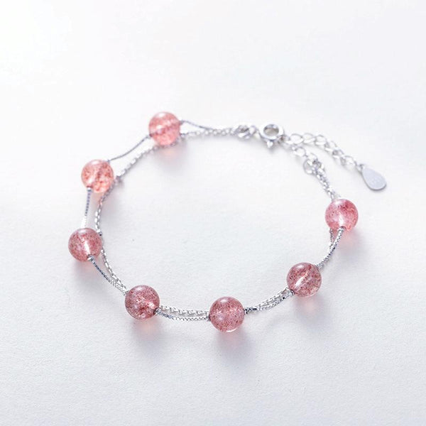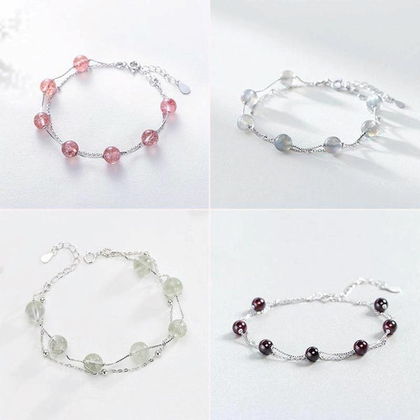 925 Sterling Silver Bracelet Women Crystal Bracelet Natural Beads Double-Layers Jewelry, Style:Strawberry Crystal
