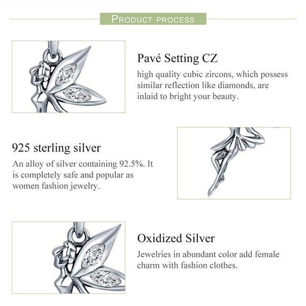 925 Sterling Silver Flower Fairy Dangle Pendant Women DIY Bracelets Necklaces Accessories