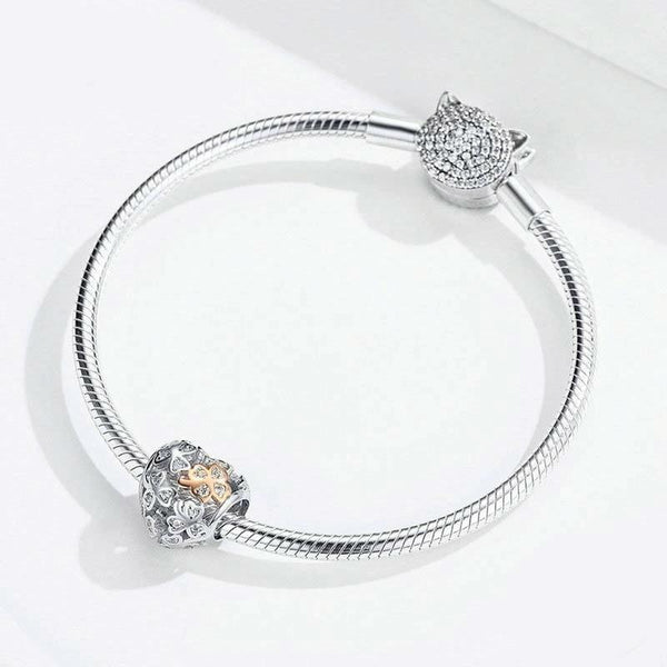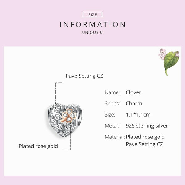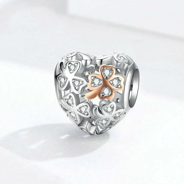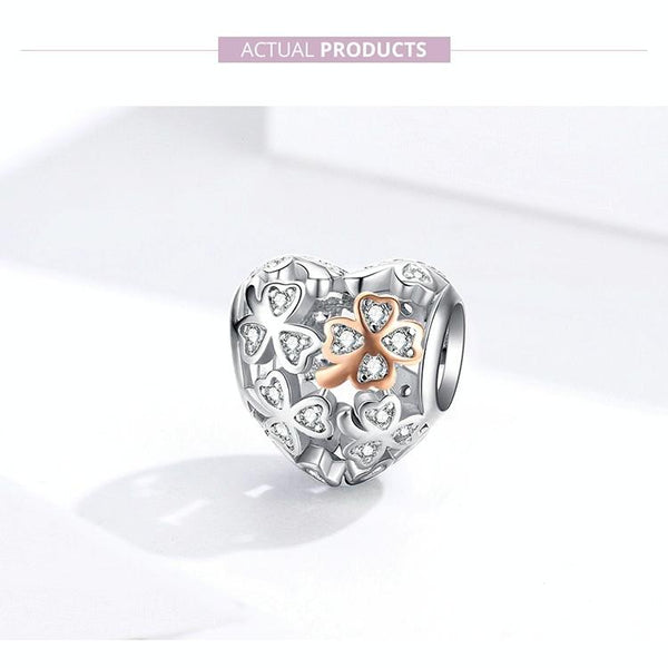 925 Sterling Silver Heart-shaped Beaded Hollow Four-leaf Clover DIY Bracelet Accessories