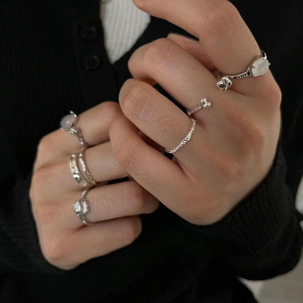 925 Sterling Silver Ladies Irregular Crystal Onyx Open Ring, Specification:J1893