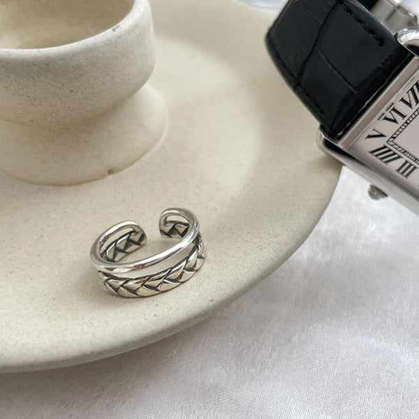 925 Sterling Silver Ladies Twisted Double Layer Open Ring, Specification:J1998