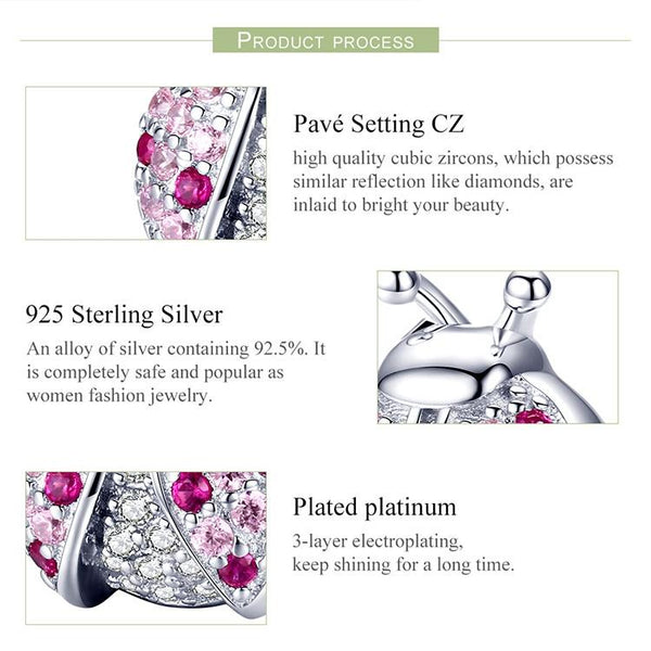 925 Sterling Silver Ladybug Pink Cubic Zircon Insect Charms Beads For Bracelets DIY