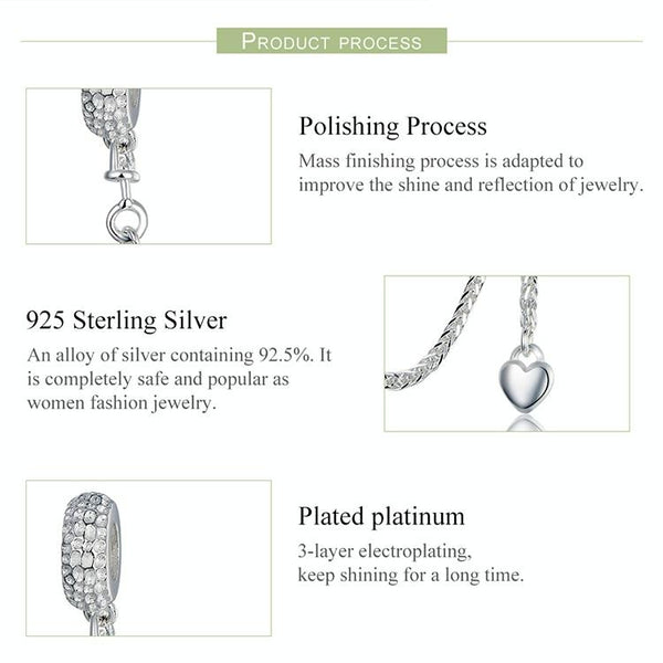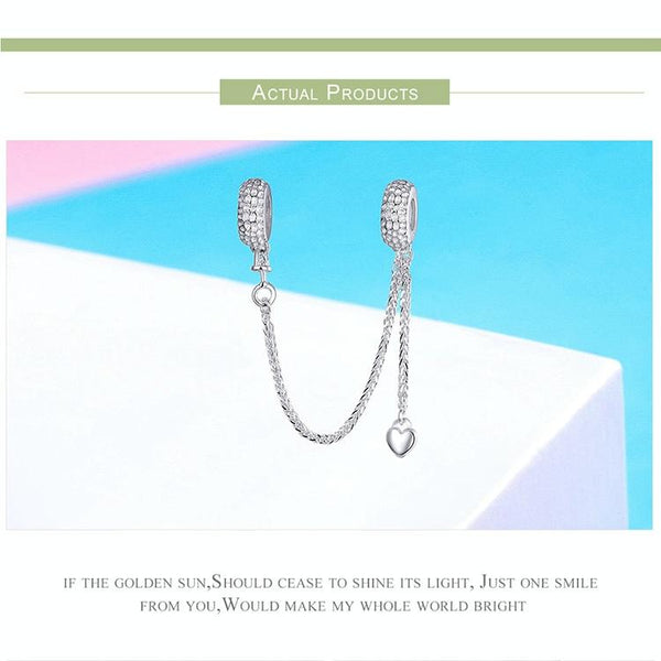 925 Sterling Silver Love Heart Safety Chain Charms Stopper Pendant Women Bracelets DIY Jewelry