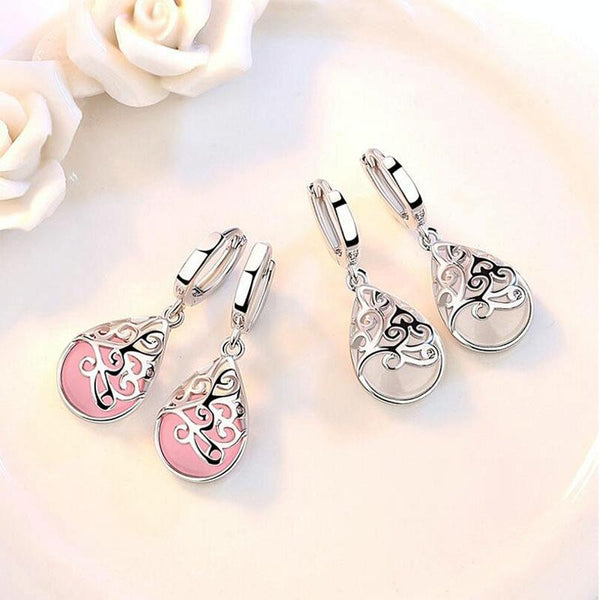 925 Sterling Silver Moonlight Opal Tears Totem Drop Earrings(pink)