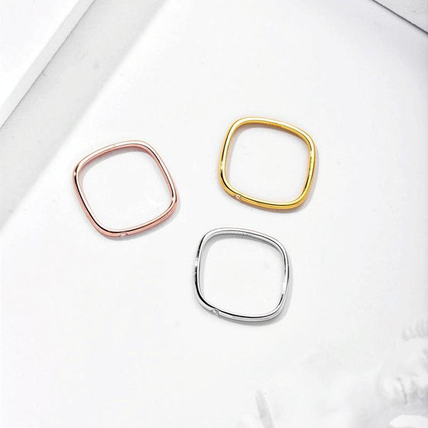 925 Sterling Silver Small Square Plain Ring, Size: No. 13 (US No. 6.5)(K Yellow)