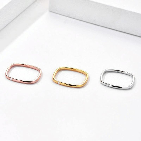 925 Sterling Silver Small Square Plain Ring, Size: No. 14 (US No. 7)(Rose Gold)