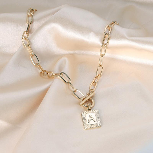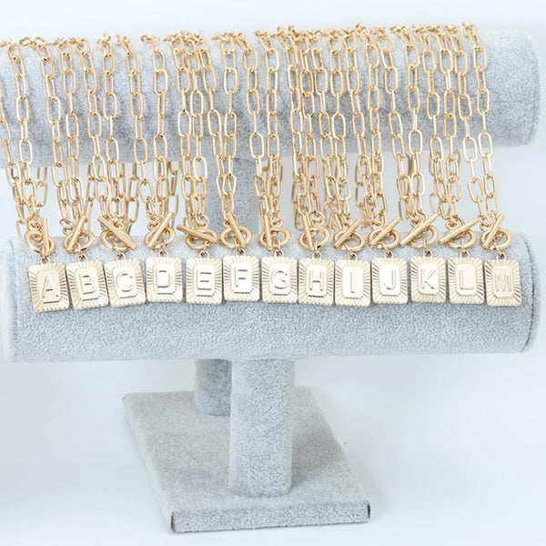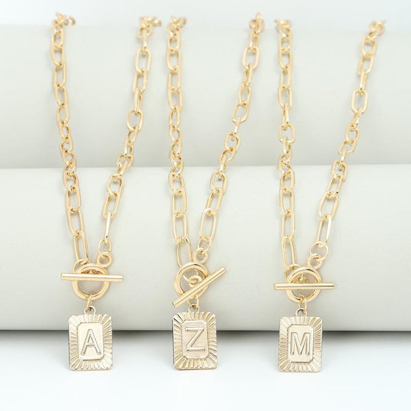 A-Z Alphabet Pendant Necklace 26 Letters OT Clasp Necklace Collar Chain Jewelry Gifts, Style: B