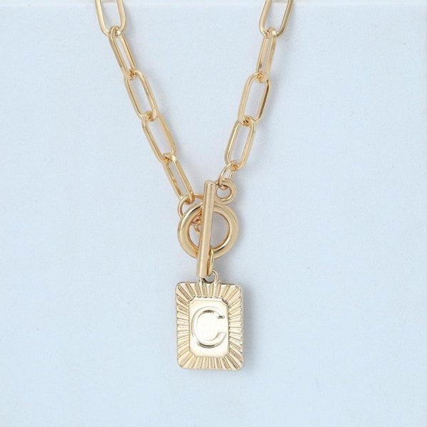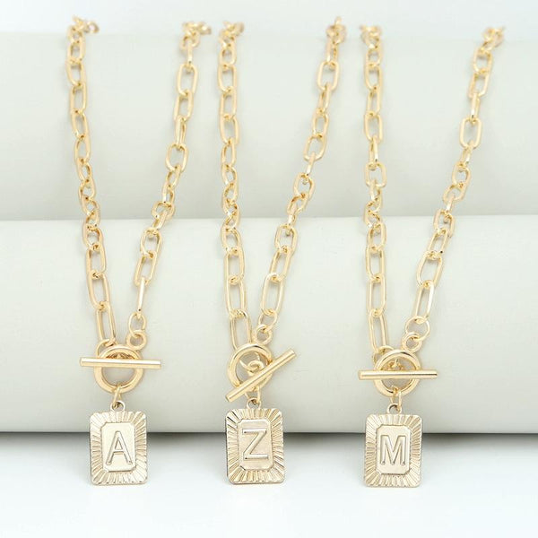 A-Z Alphabet Pendant Necklace 26 Letters OT Clasp Necklace Collar Chain Jewelry Gifts, Style: C
