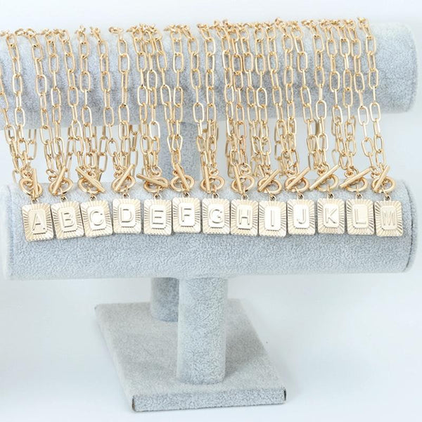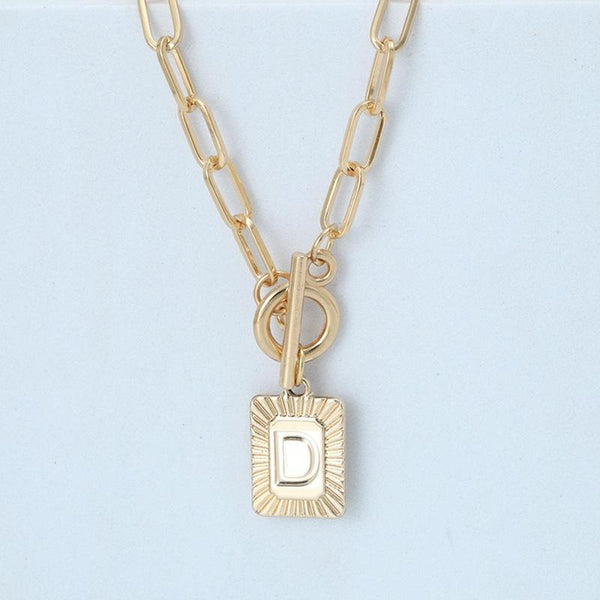 A-Z Alphabet Pendant Necklace 26 Letters OT Clasp Necklace Collar Chain Jewelry Gifts, Style: D