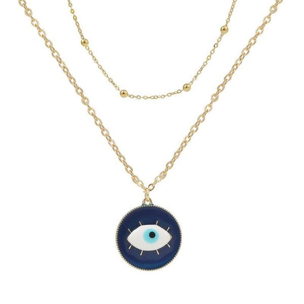 Angel Eyes Pendant Layered Necklace, Model: N2106-8 Blue Bottom Blue Eye Double-Layer Chain
