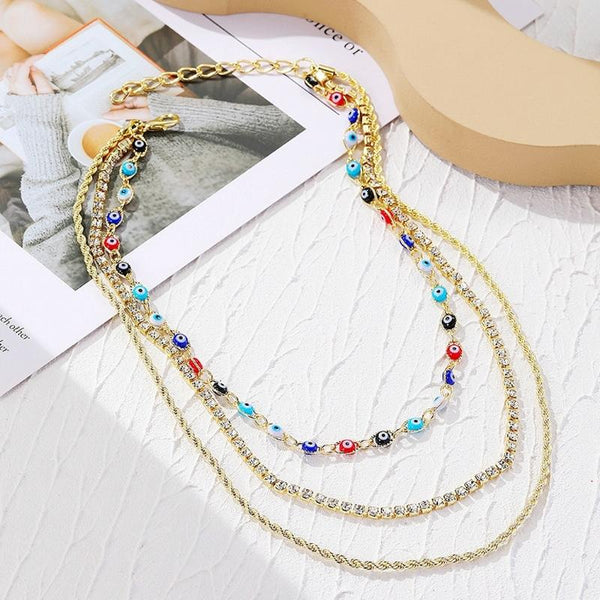 Angel Eyes Pendant Layered Necklace, Model: N2210-5 3 Layer Colorful Eyes