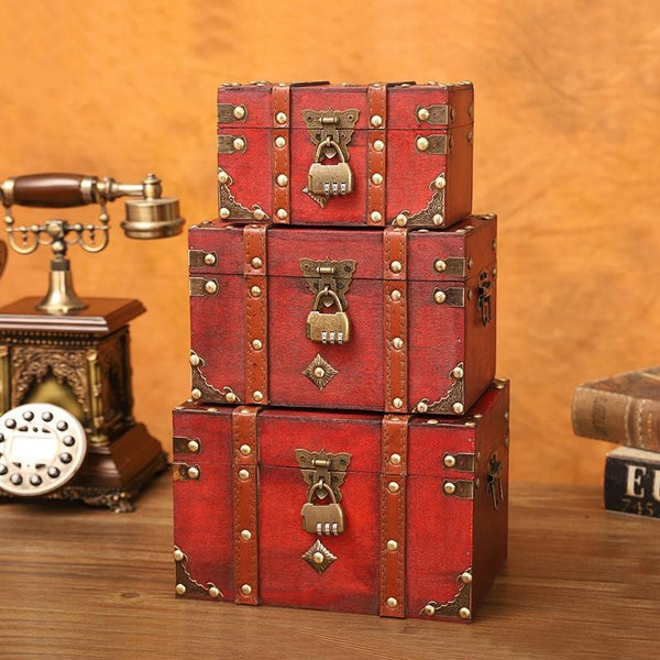 Antique Square Jewelry Storage Box Film And Television Props Wooden BoxSpecification 3 PCS / Set Retro Three-digit Lock