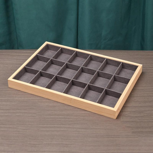 Bamboo Wood Jewelry Display Pallet Jewelry Storage Display Tray, Style: 18 Grid Tray