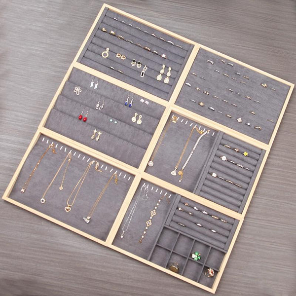 Bamboo Wood Jewelry Display Pallet Jewelry Storage Display Tray, Style: Triple-use Tray