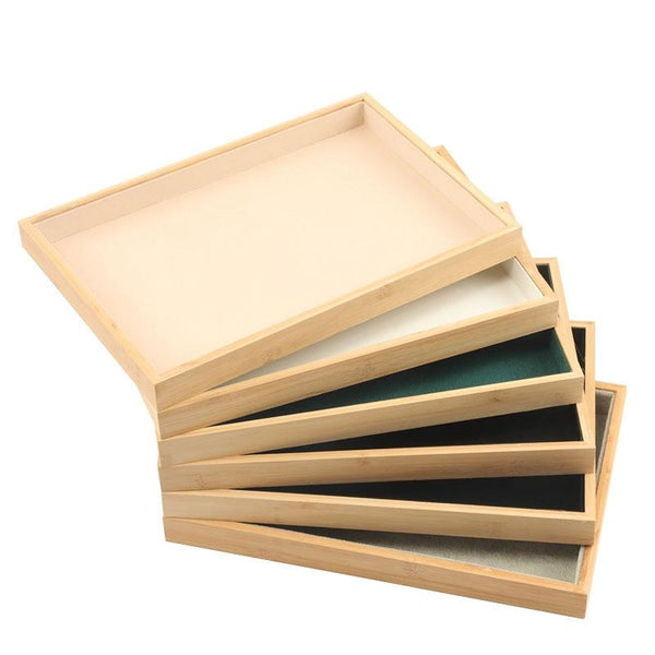 Bamboo Wood Velvet Multi-Functional Jewelry Display Tray Jewelry Storage Box Empty Tray, Style: Velvet (Dark Green)