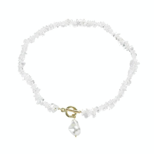 Boho Colorful Broken Natural Stone Necklace, Model: N2206-11 Transparent Stone