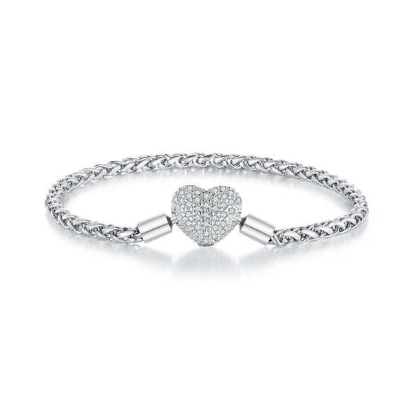 BSB133-17 Sterling Silver S925 White Gold Plated Zircon Heart Sparkling Bracelet