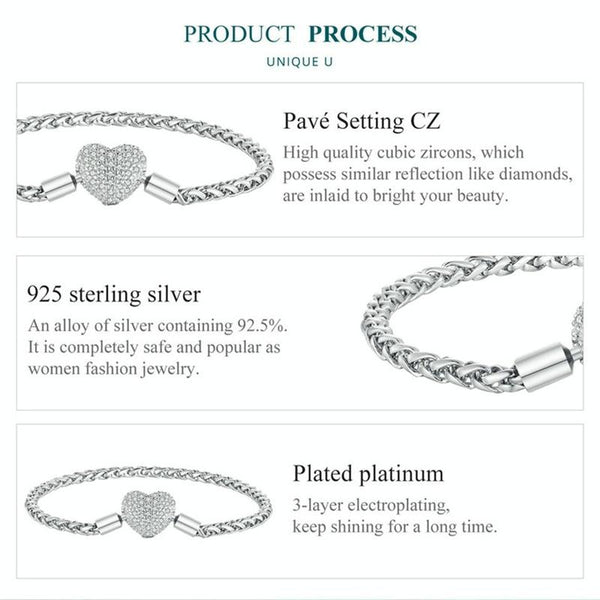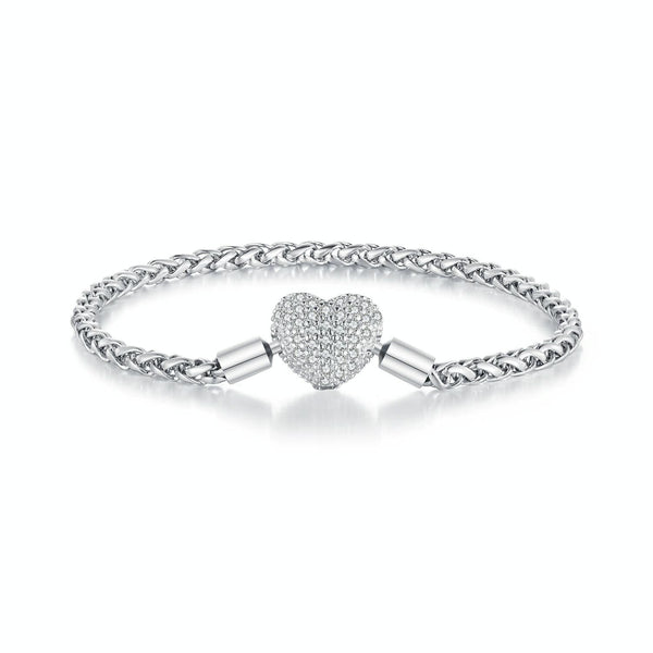 BSB133-19 Sterling Silver S925 White Gold Plated Zircon Heart Sparkling Bracelet